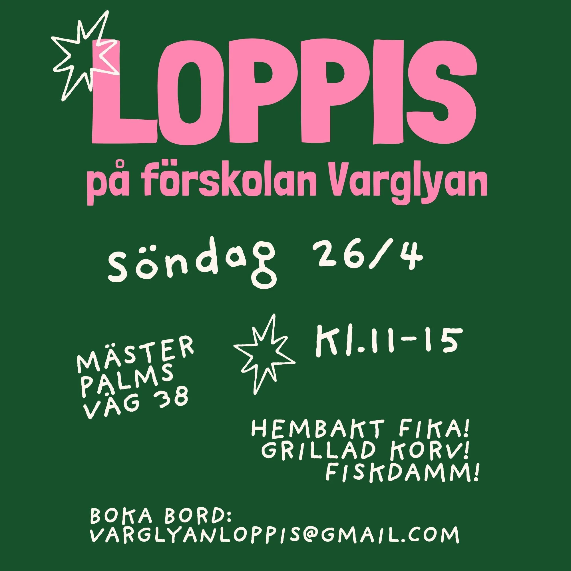Söndag 26 april klockan 11.00–15.00 arrangerar vi vårloppis på Varglyan, Mäster Palms väg 38.